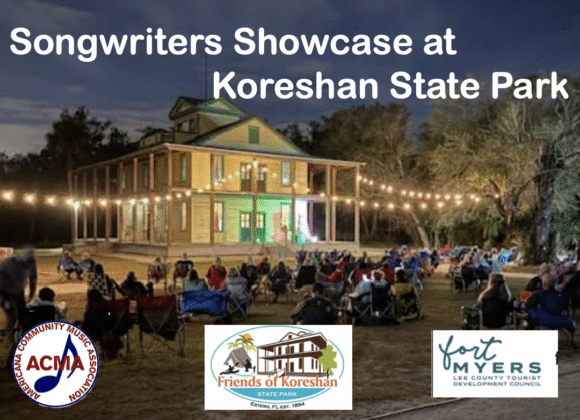 ACMA Songwriters at Koreshan State Park The Friends of Koreshan State Park have partnered with the ACMA (Americana Community Music Association) to present monthly concerts featuring all-original music by talented local artists. Bring a chair or blanket and settle in for an evening under the stars. If the weather doesn’t cooperate, the show will be canceled and your tickets will be honored at next month’s performance. The ACMA, a Fort Myers–based nonprofit, is dedicated to promoting original music by local…